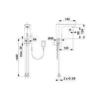 Bateria umywalkowa stojąca KFA Armatura SALTO, chrom, z regulacją temperatury, montaż blat / otwór na baterię