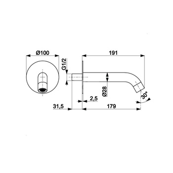 Wylot wannowy MOZA podtynkowy, złoty szczotkowany pvd